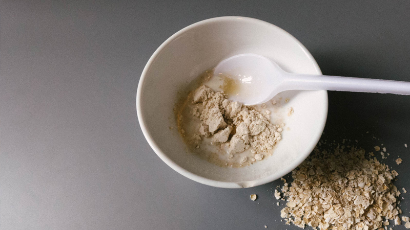 Bạn có thể bổ sung bột yến mạch vào thực đơn hàng ngày của mình hoặc trộn 1 thìa bột yến mạch với mật ong. Sau đó thoa hỗn hợp này lên trên mặt để trong vòng 20 phút và rửa lại bằng nước ấm.