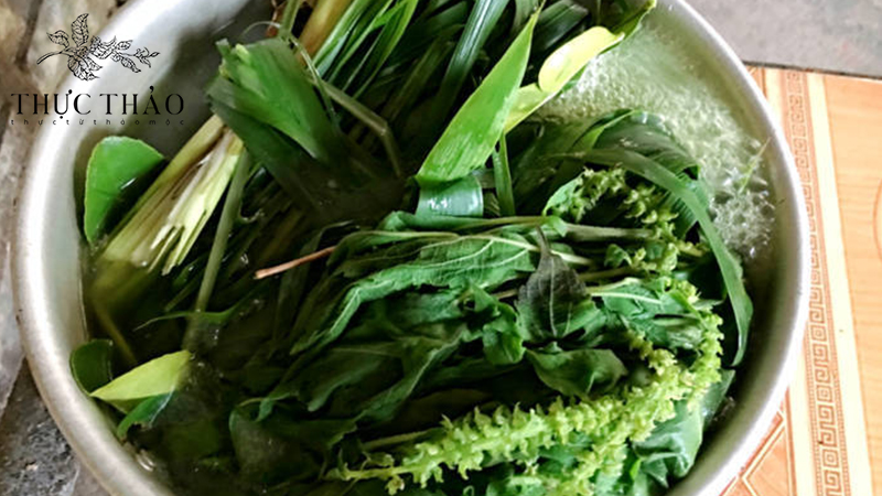 Chuẩn bị: 4-5 nhánh é rừng, quả chanh cắt lát, 3 củ sả đập dập + lá sả, vài lát gừng.